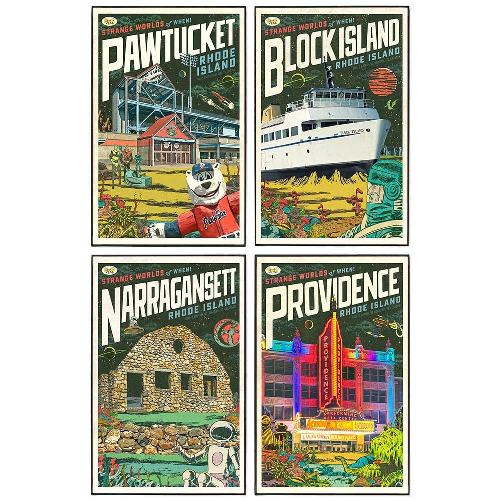 Strange Worlds of When! Series 6 – 11 x 17 Print, Set of 4 Framed